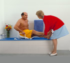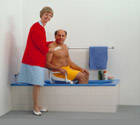 Swivel the seat to face the side of the bath and lock into position. The user can now be seated. |